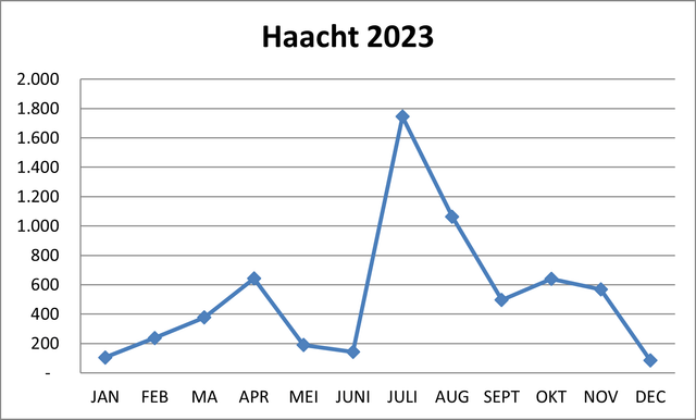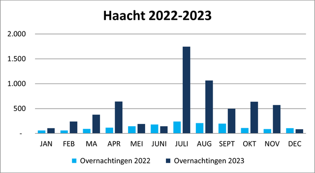 In 2023 mocht Haacht 2.317 gasten verwelkomen. Zij waren samen goed voor 6.294 overnachtingen.