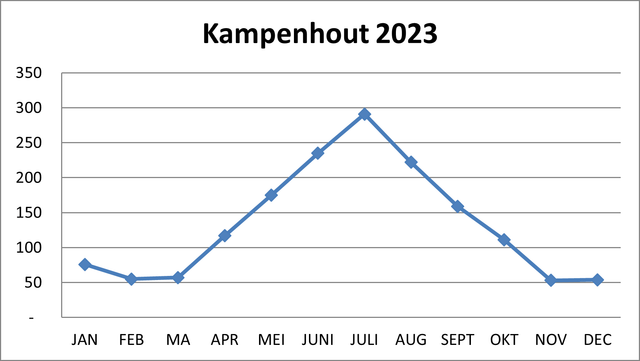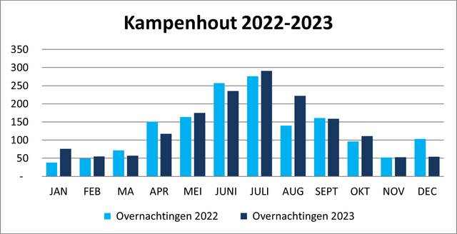 In 2023 mocht Kampenhout 943 gasten verwelkomen. Zij waren samen goed voor 1.605 overnachtingen.