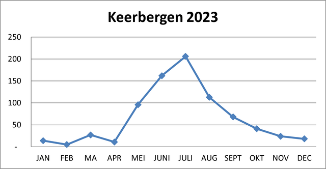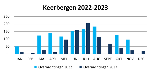 In 2023 mocht Keerbergen 425 gasten verwelkomen. Zij waren samen goed voor 785 overnachtingen.