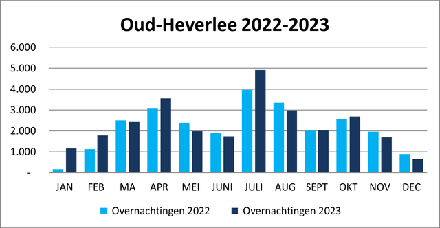 In 2023 mocht Oud-Heverlee 10.285 gasten verwelkomen. Zij waren samen goed voor 27.657 overnachtingen.