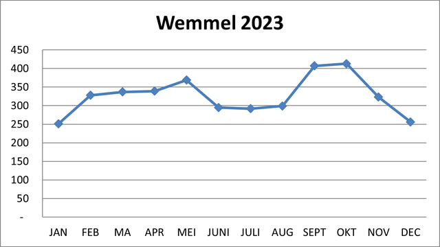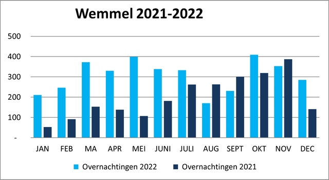 In 2023 mocht Wemmel 2.102 gasten verwelkomen. Zij waren samen goed voor 3.909 overnachtingen.